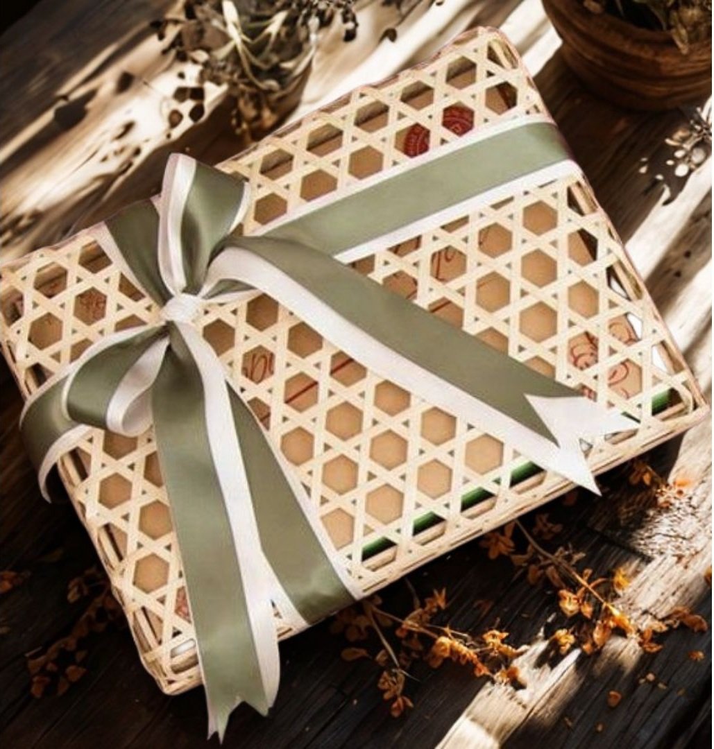 The Shape represents structure, balance, and thoughtfulness — embodying the idea that every gift is carefully considered and wrapped with meaning. The material from rattan cane webbing that : symbolizes connection and sustainability. The interwoven strands reflect human bonds and shared heritage, while the natural material honors eco-friendly living and timeless artisanal tradition.