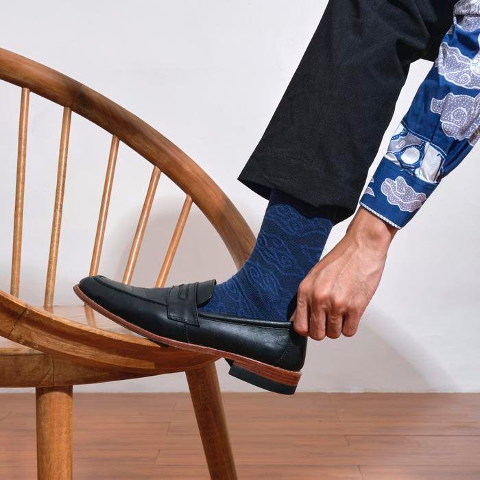 Inspired by Batik Mega Mendung, these socks bring Indonesia’s cultural heritage into a modern touch. The Mega Mendung motif symbolizes patience, wisdom, and serenity, creating an elegant design full of meaning. Made from premium cotton, these socks are breathable, soft, and comfortable to wear all day. Perfect for both formal styling and your everyday casual look.